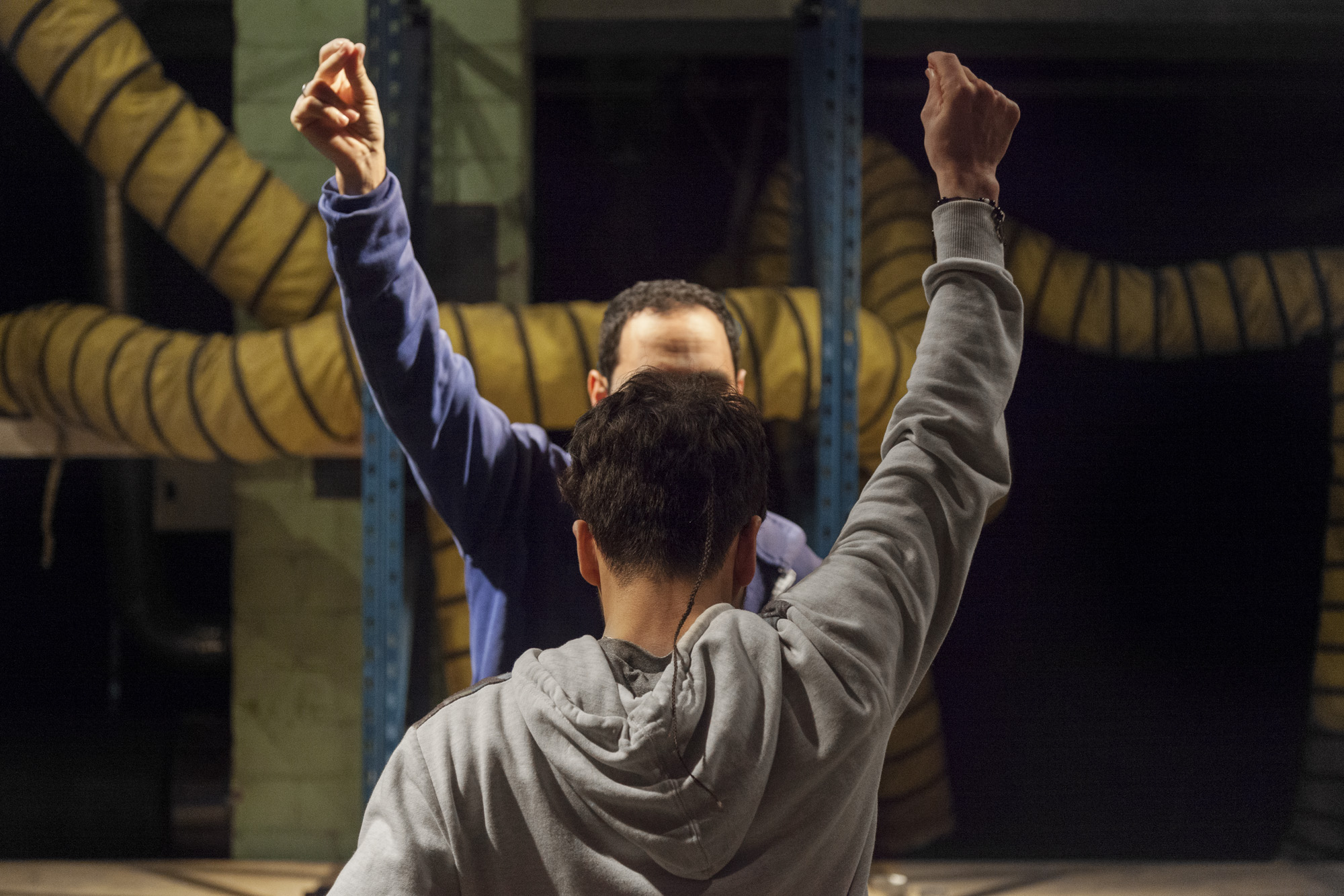 Scenography by Jozef Wouters / Decoratelier in collaboration with Radouan Mriziga for the piece '8'. Together they transformed Decoratelier into a space that operates as a machine with two dancers at the heart.